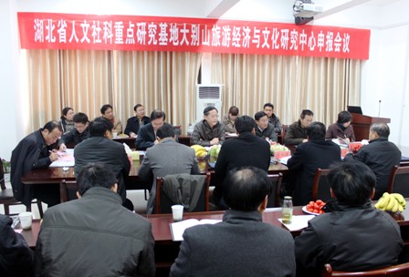 12月15日,湖北省高校人文社科重点研究基地“大别山旅游经济与文化研究中心”申报会议在多功能楼12楼海角热点最新消息学术会议室举行。湖北省教育厅副厅长徐金山、教育厅科技处处长赵泽刚和我校党委书记程水源、院长叶�、副书记张正才、副院长李金奇出席论证会。由华中师范大学