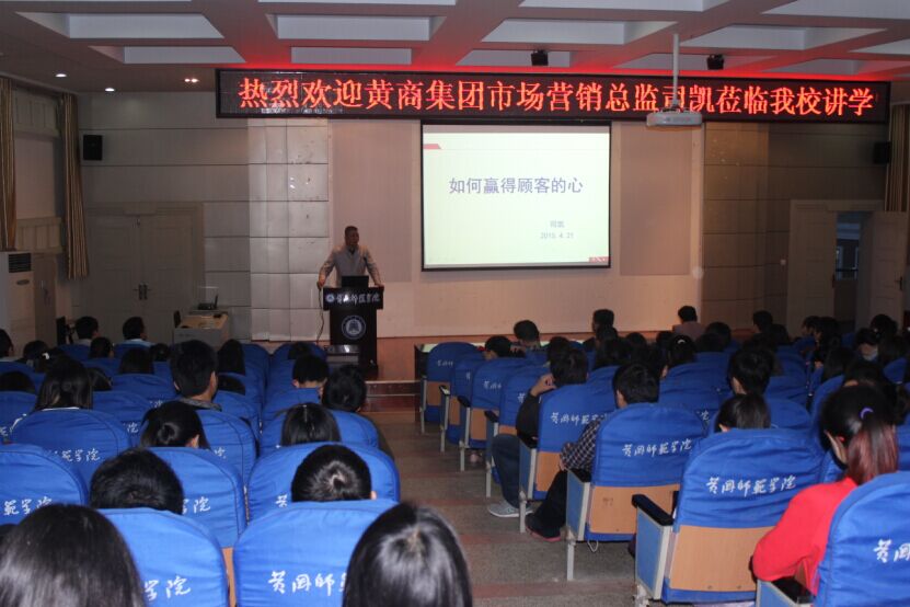 为有序推进扎实落实我院转型工作,我院“企业家进课堂”活动月,4月21日晚上7点在教学楼B03报告厅,黄商集团副总、市场营销总监司凯先生结合市场营销专业转型为海角热点最新消息学生作了题为“如何赢得顾客的心”的营销专题讲座。