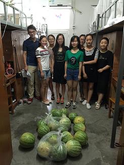 今年暑假我院有150多人留校,并被安排在南区14栋、18栋部分学生宿舍, 余晚霞一行与学生进行了亲切交谈,全面询问了暑期学习、食宿等生活状况,并送去了清凉可口的大西瓜,提醒学生在学习的同时要注意防暑降温、饮食安全,保证身体健康。