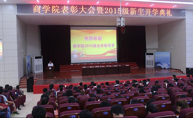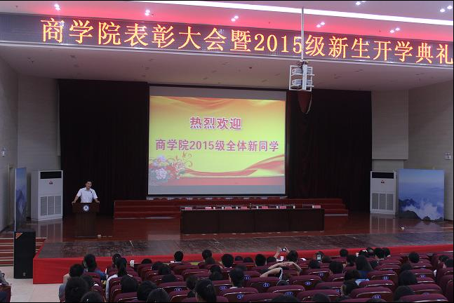 9月26日下午,我院在学术交流中心隆重举行2015年表彰大会暨新生开学典礼。院党总支书记李月华,院长刘汉成,党总支副书记余晚霞,副院长王庆,院长助理周业旺、柯珍堂,工会主席管中柱,办公室主任李碧芬出席会议。会议由余晚霞主持。