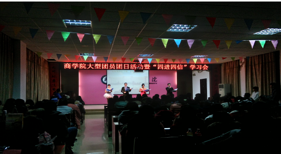 通过本次大型团会,让同学们对大学生活有了新的目标和思考,促使同学们深入了解四进四信,坚定了同学们为理想目标而努力奋斗的信念。