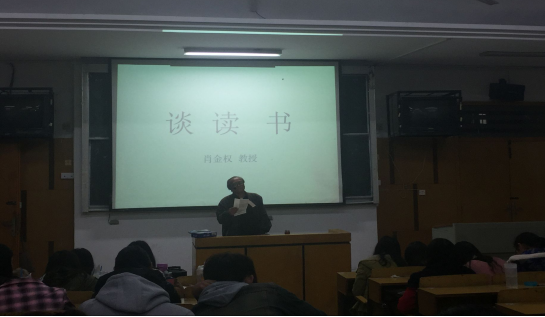3月16日晚7时许,主教A02教室灯火辉煌、座无虚席。黄冈师范学院国务院特殊津贴专家、原政法系主任肖金权教授以“谈读书”为题,为我院15级学生作了一场内容丰富、意义深刻的讲座。院党总支副书记余晚霞,辅导员黄杰聆听了讲座。