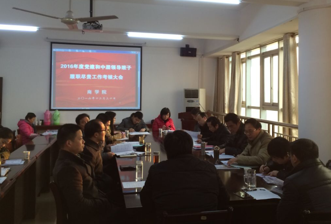 12月30日上午7点50分在学院704会议室,我院迎来了学校第六考核组关于党风廉政建设和中层领导班子履职尽责工作考核。第六考核组组长是校长助理汪晓凌,组员有学校学术委员会主任徐德平、政法学院党总支书记彭旺林、校工会副主任孔志宏、国际教育学院党总支副书记胡德胜和校长办公室朱蕾、校党委宣传部张章等同志。