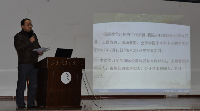 首先,柯珍堂对毕业生专业实习工作的意义和重要性进行了强调,并就2013级本科毕业生实习工作的实习领导小组、实习安排形式、实习目的、实习任务以及实习基本要求等方面做了详细的安排和布置,尤其是重点强调学生在实习期间的各项安全问题,要求大家在确保人身、财产等安全的前提下顺利开展实习工作,要求各位校内实