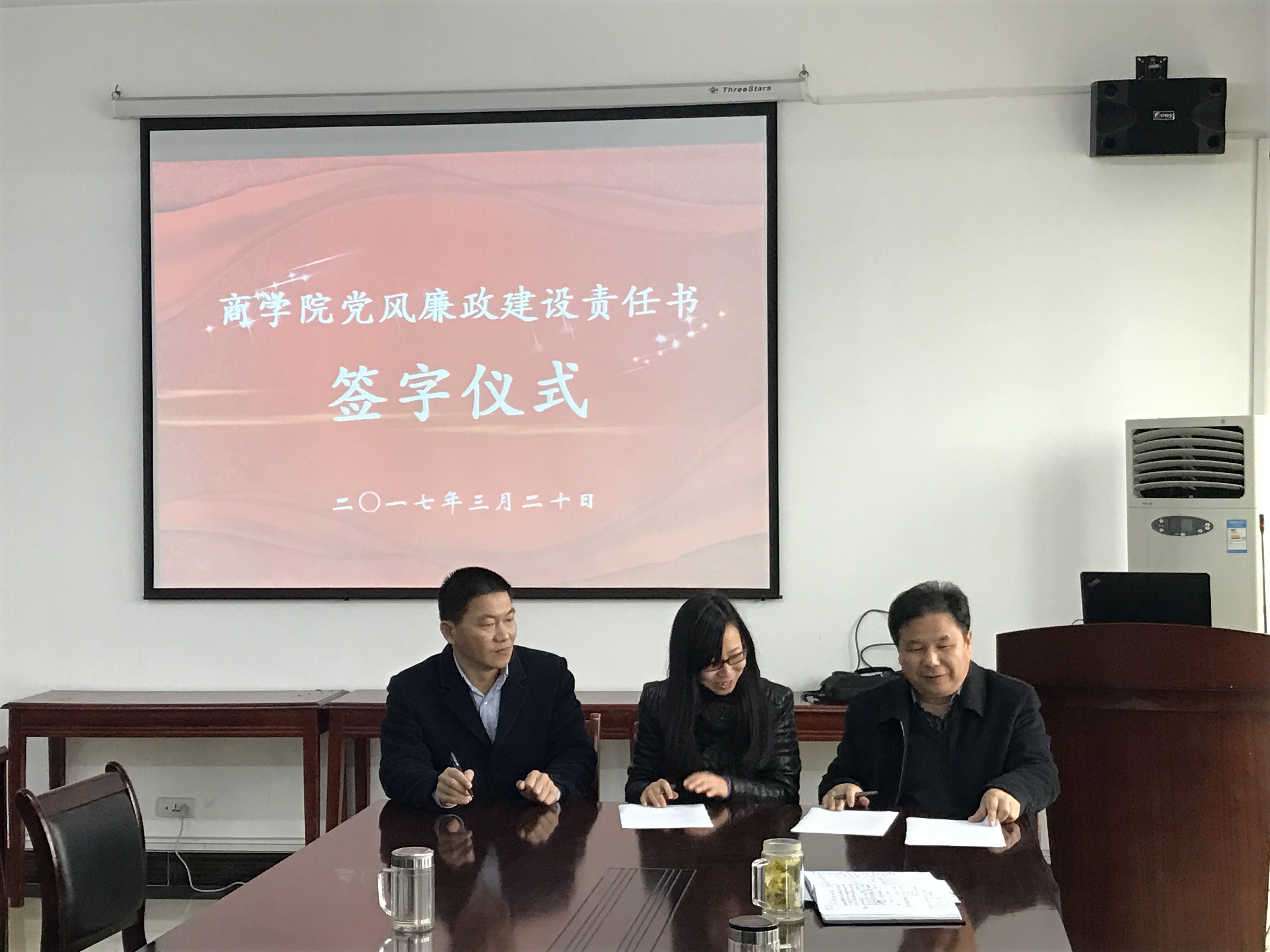320日上午9点,在我院党政班子每周例会之前,学院全体班子成员在学院704#会议室举行了每年一度的学院党风廉政建设责任书签字仪式。仪式由学院党总支书记李月华主持。