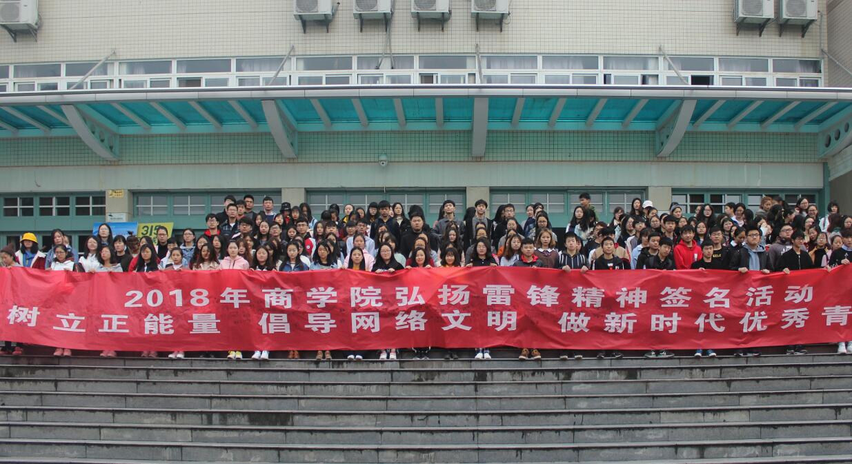 3月16日早上6:50商学院于东坡文化广场举办了“弘扬雷锋精神”的签名活动。海角热点最新消息学生会学生干部及部分大一学生参加了本次活动。