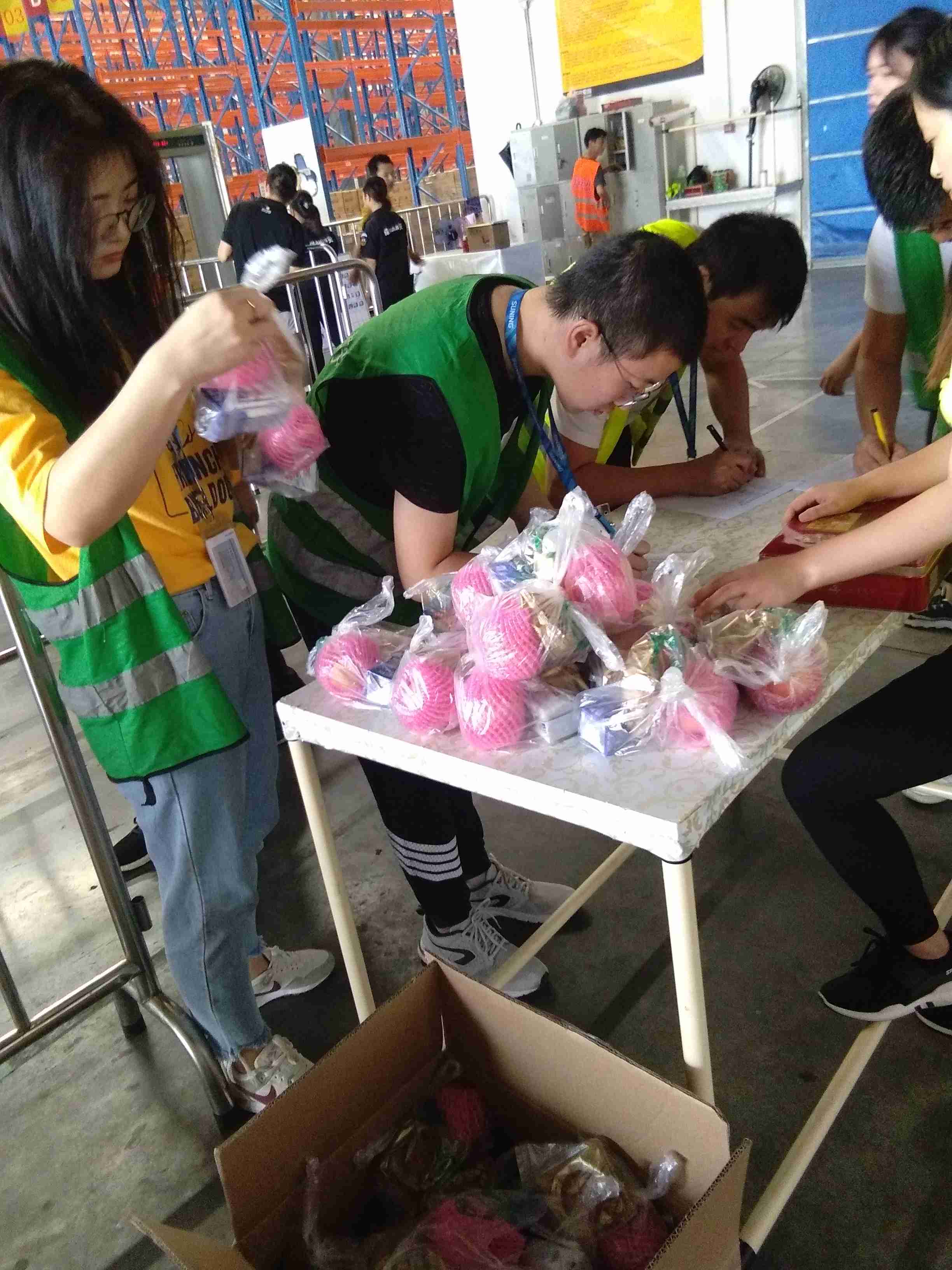 柯珍堂老师代表学院对同学们的实习表示慰问及关怀,并且希望同学们在苏宁实习期间注意安全、努力工作,严格遵守企业管理制度,为即将到来的“双十一”做好准备。然后老师们按照寝室顺序依次给同学们发放了水果,并亲切的问候大家的实习情况,祝福大家能够在苏宁过一个快乐的中秋,给每位辛苦工作的同学带来了温暖与感动。苏宁物流还专门给学生准备了月饼、水果,中秋加餐以及每人50元的节日慰问金。