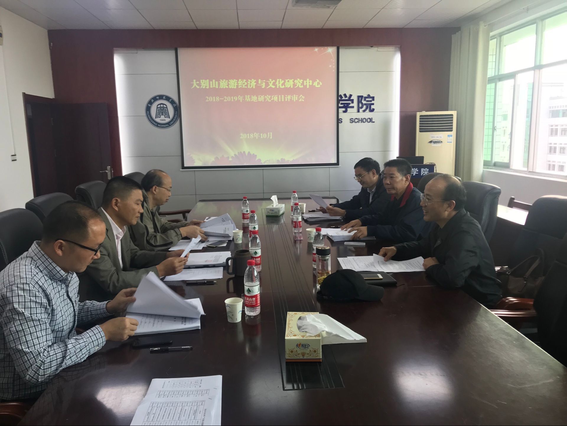 2018年10月17日,由中南财经政法大学陈池波教授、华中师范大学罗静教授以及我校科技处、海角热点最新消息、地理与旅游学院、建筑工程学院教授组成的专家评委会,在海角热点最新消息719会议室召开湖北省高等学校人文社会科学研究基地大别山旅游经济与文化研究中心2018年度课题立项评审会。