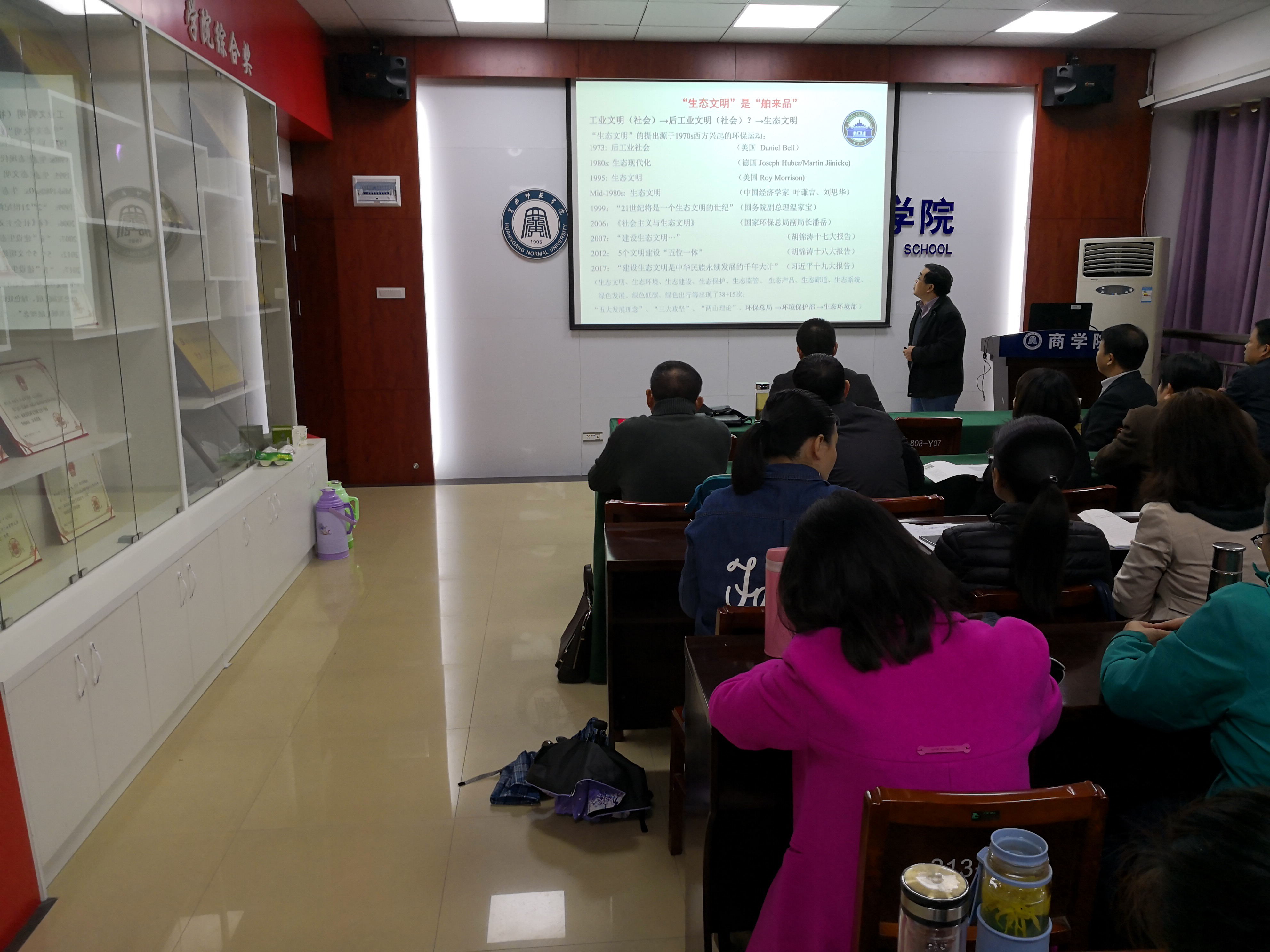 刘传江教授在题为《生态文明发展的生态经济学视野》的报告中,指出生态文明是人类文明发展中的新阶段,是贯穿于经济建设、政治建设、文化建设、社会建设全过程和各方面的系统工程,反映了一个社会的文明进步状态。重点讲解了生态文明的内涵与发展路径,并提出了从工业文明转向生态文明引发的相关的经济学话题。内容具有高度的理论价值,开阔了教师和学生的科研视野与眼界。