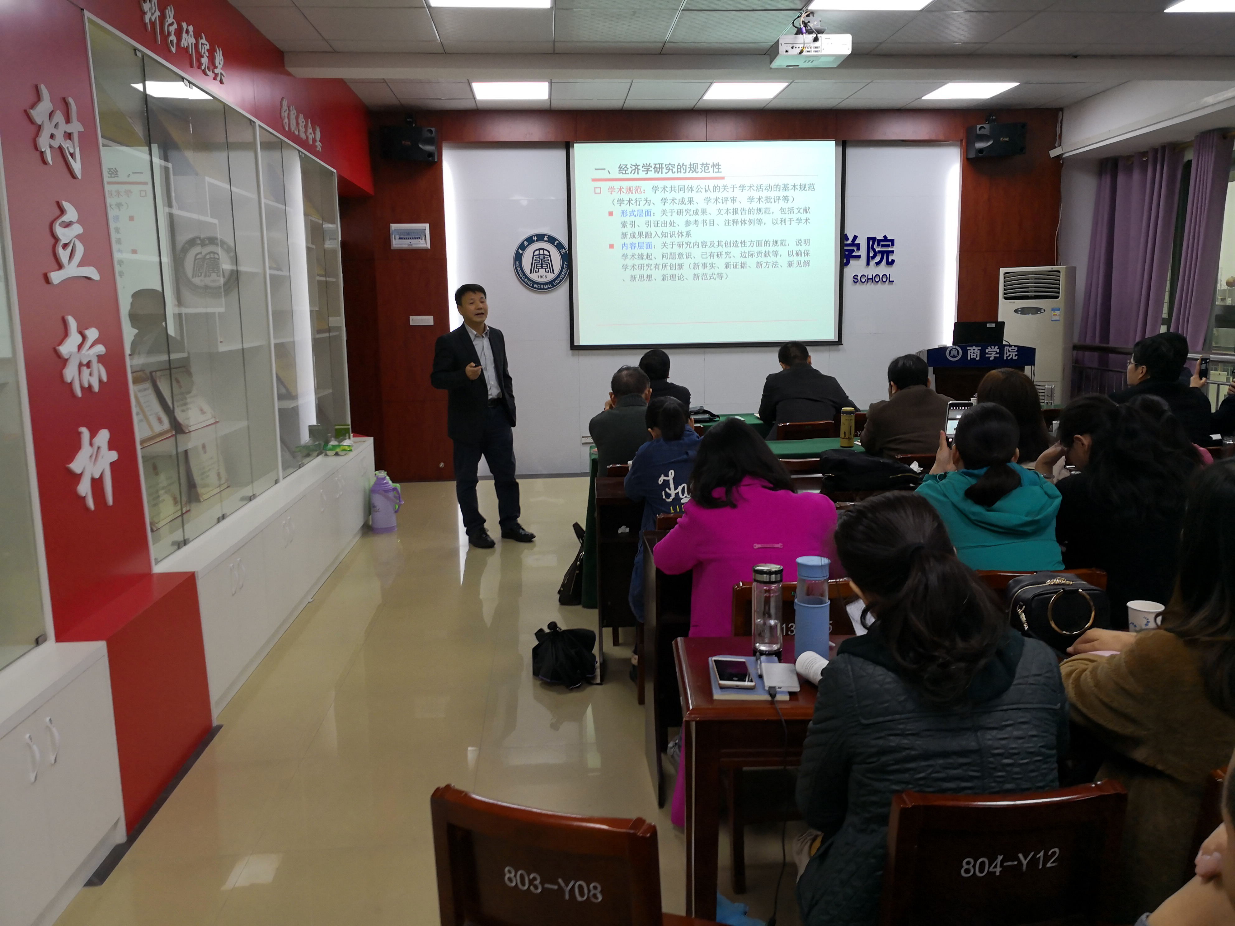 叶初升教授在题为《经济学研究的规范性、学术性与思想性》的报告中,以当下中国经济学研究中的倾向性问题为引言,提出了经济学研究的形式层面、内容层面和方法层面对规范性的要求。重点对科研选题方面进行了全面而系统的讲解。内容丰富,深入浅出,通俗易懂,有针对性,切实解决了教师科研中的实际问题。