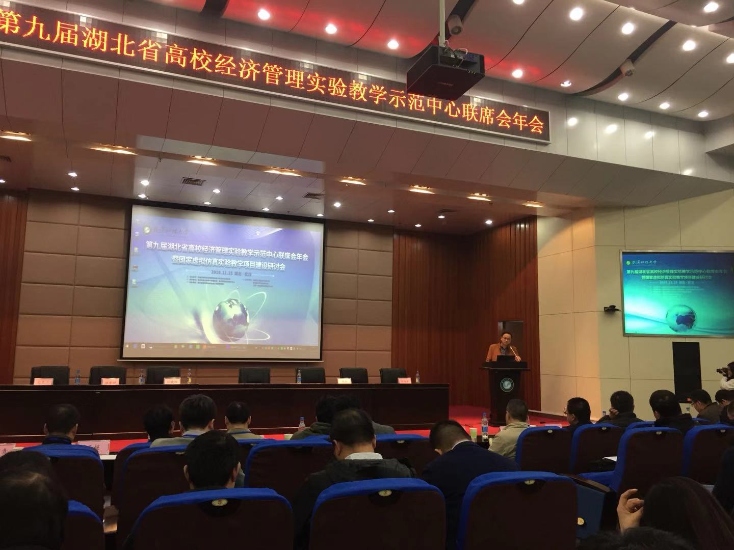第九届湖北省高校经济管理实验教学示范中心联席会暨国家虚拟仿真实验教学项目建设研讨会于2018年11月25日在武汉科技大学隆重举行,中心主任余振教授主持示范中心主任会议,武汉科技大学恒大管理学院院长邓旭东教授等主持联席会,武汉大学经济与管理国家级实验教学示范中心执行主任张东祥教授作联席会工作报告。副院长柯珍堂代表黄冈师范学院海角热点最新消息经济管理与创业实验教学中心在大会上作交流发言,我院实验室主任纪关心老师一同出席会议。
