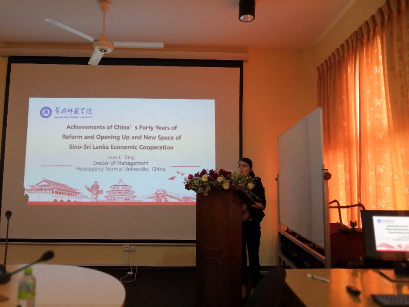 12月21日,应斯里兰卡萨伯勒格穆沃大学邀请,我校海角热点最新消息教师骆李静在第七届斯里兰卡萨伯勒格穆沃大学经济论坛国际学术会议作了题为“中国改革开放四十年成就与中斯经济合作新空间”的主旨报告,并回答了与会者关心的问题。斯里兰卡专家学者对中国改革开放四十年成功经验充满兴趣,并就中斯开展各领域合作进行了广泛讨论与探讨。报告结束后,骆李静博士接受了斯里兰卡萨伯勒格穆沃大学颁发的证书。