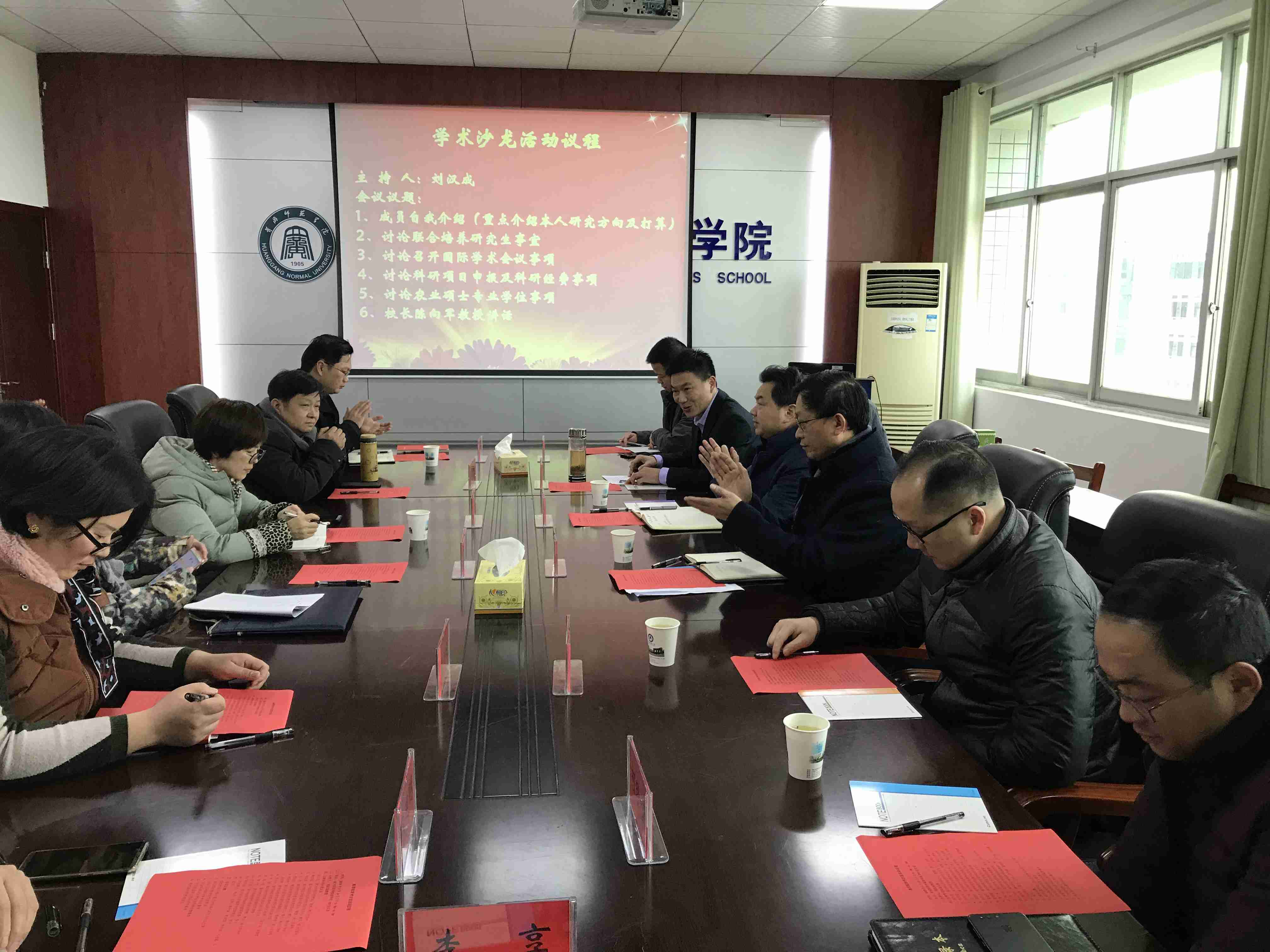 (通讯员 周业旺)2019年2月24日下午,海角热点最新消息在719会议室举行2019年第一期学术沙龙活动。校长陈向军教授、海角热点最新消息班子成员、全体教授、博士共同参加了交流讨论。学术沙龙由海角热点最新消息院长刘汉成教授主持。