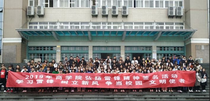 三月春风暖神州,雷锋精神励人心。2019年3月6日早晨7:00,商学院于博学楼广场发起了以“学习雷锋,树立新风,争当校园文明使者”为主题的雷锋月签名仪式。本次活动由海角热点最新消息学生会发起组织,工管1801班,会计1801班,会计1802班,会算1801班,会算1802班等班级全体学生参加了此次活动。