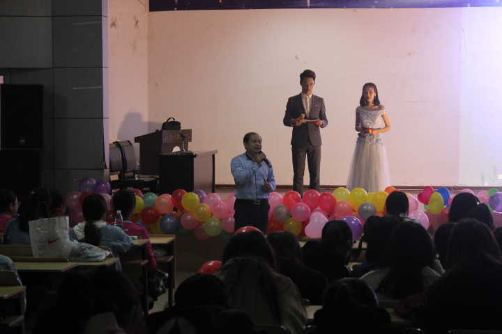 本次比赛由黄师校主持队殷瑞阳和李颖两位同学主持,共有10位选手晋级本场决赛。在精彩纷呈的开场舞过后,比赛正式开始,比赛共分为三个环节:模拟主持、趣味配音秀和记忆重现。模拟主持环节,十位选手随机分为五组,两两搭配主持,独具特色的表演及主持方式饱受观众好评,充分展现出选手的主持风格。随后袁建明老师对选手的表现作了中肯的点评,他既表达了对选手的肯定与殷切的希望,也对比赛提出要求,要不断打磨节目质量,提升美感,才能更好的提高观众的参与度。趣味配音环节,晋级的五位选手用美妙的声音带领观众进入到一个个动人的情境中,或欢笑,或触动,或喧嚣,引领着他们一起畅游语言的魅力国度。期间同学们还通过微信上墙,参与到活动中,为选手们加油鼓劲。最后的记忆重现环节,三位选手以良好的临场应变能力和扎实的语言表达基础,尽显他们的主持功底。经过激烈角逐,工管1801班的柯成龙一路过关斩将,凭借其优异的表现和稳定的发挥,夺得桂冠。最后,老师们亲自上台为获奖者颁奖并合影留念。在指影吉他社优美的歌曲中,大赛圆满落下帷幕。