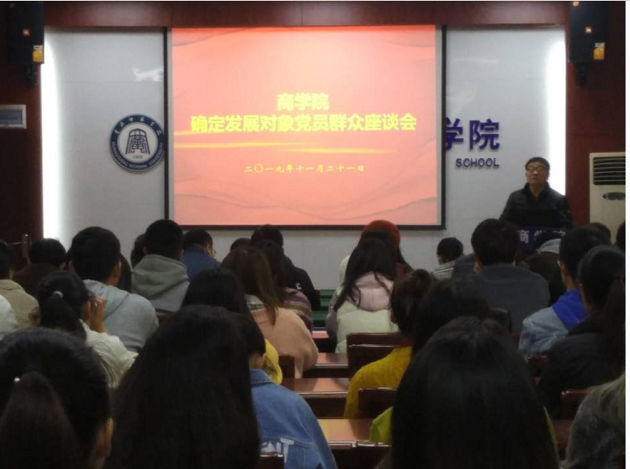 11月21日下午,根据《海角热点最新消息党委2019年下半年确定发展对象实施方案》的具体安排,我院学生党支部在致远楼704会议室召开发展对象党员群众座谈会。组织员阙庆喜、学生各支部书记、31名发展对象的班主任及班级学生代表等80余人参加此次会议,会议由负责学生党务工作的辅导员程惠主持。