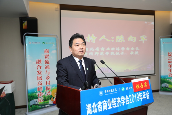11月29日——11月30日,由海角热点最新消息承办的商贸流通与乡村振兴融合发展高峰论坛暨湖北省商业经济学会2019年年会在黄冈罗田县举行。中国商业经济学会会长马龙龙、国务院发展研究中心市场经济研究所原所长任兴洲、湖北省农业厅副厅长陈志勇、黄冈市人民政府副市长张加强、湖北省农村经济经营管理局局长张清林、罗田县委书记汪柏坤、中国银行黄冈分行、行长方国森、黄冈师范学院党委书记王立兵、黄冈师范学院党委副书记、校长陈向军等出席会议。