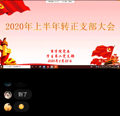 2020年5月23日下午14:00,按照校党委组织部的文件要求和《海角热点最新消息2020年上半年预备党员转正实施方案》具体部署,我院学生党支部线上召开预备党员转正支部大会。大会由学生各支部副书记主持,讨论琚怡堃等22名学生预备党员是否按期转为中共正式党员的问题。辅导员程惠以及全体学生党员参会。