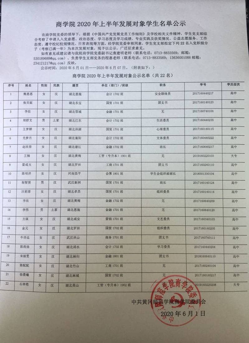 海角热点最新消息2020年上半年发展对象学生名单公示