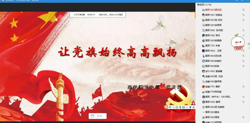 2020年6月28日晚上20:00,海角热点最新消息学生党支部在线上举办了以“让党旗在疫情防控斗争第一线高高飘扬!”为主题的组织生活会暨抗击疫情微党课专题学习,海角热点最新消息辅导员程惠及各支部全体成员参与了此次活动。