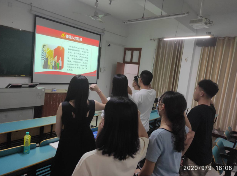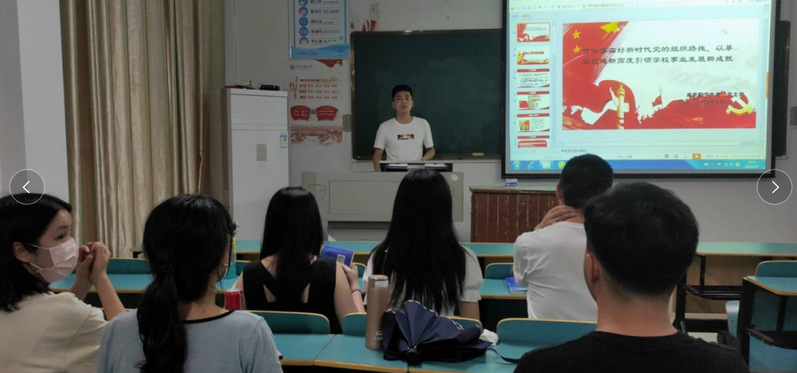 学生第二党支部活动在力行楼601教室举行,由支部副书记刘玉川同志主持。首先,全体与会同志奏唱国歌,重温入党誓词并诵读党章。通过学习习近平新时代中国特色社会主义思想,深刻领会习近平新时代中国特色社会主义思想的精髓要义。切实把思想和行动统一到习近平新时代中国特色主义思想上来。全体党员应该秉承着“人民至上”这条红线一以贯之。人民是我们党执政的最大的底气。习近平同志还做出了重要指示强调:坚决制止餐饮浪费行为切实培养节约习惯在全社会营造浪费可耻节约为荣的氛围。会议的最后学习了习近平总书记在经济领域专家座谈会上重要讲话精神。警醒全体党员要着眼长远,作出新规划。会后,第二支部的党员刘静静说:“开学来,首次参加支部线下活动,心情很激动!学习习近平总书记的讲话精神,振聋发聩!”
