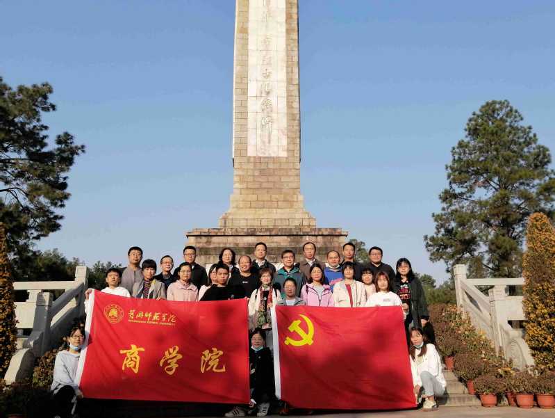 在黄麻起义和鄂豫皖苏区革命烈士纪念碑前,我院党员师生举行庄重仪式,为牺牲的革命先烈默哀,寄托对烈士的哀思。在庄严肃穆的纪念碑前,全体党员师生面对党旗重温入党誓词,向党旗和英雄先烈们做出一名共产党员教师的郑重承诺,牢记自己肩负的神圣职责和光荣使命。