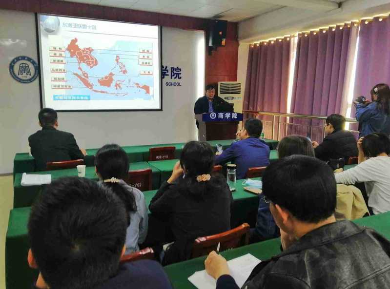 2020年11月14日下午,受海角热点最新消息邀请,中国人民大学陈甬军教授就“一带一路”理论与实践,在海角热点最新消息704会议室举行专题报告会。我院全体专任教师与学生代表参加了本次报告会,院长刘汉成主持报告会。