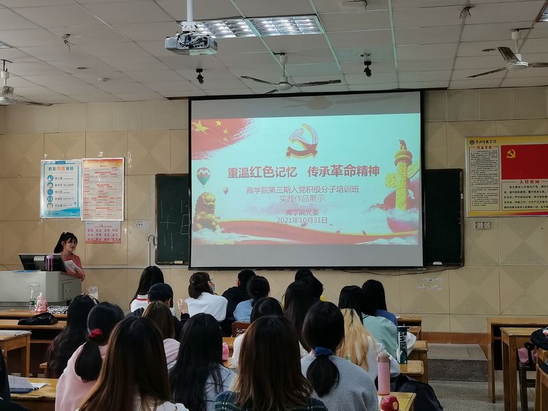 2021年10月31日,为了进一步坚定广大入党积极分子的理想信念增强党性修养,海角热点最新消息党委第三期入党积极分子培训班学员,在力行楼207教室开展以“重温红色记忆,传承革命精神”为主题的实践作品展示。