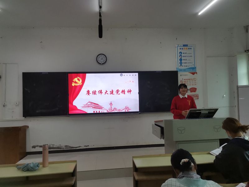 第二场宣讲由青年宣讲团成员张勤围绕赓续伟大建党精神展开宣讲。首先讲到了伟大建党精神的内涵:坚持真理、坚守理想,践行初心、担当使命,不怕牺牲、英勇斗争,对党忠诚、不负人民。伟大的建党精神也孕育了大别山精神,坐落在大别山脚下的我们更该发扬与传承。作为当代青年,应该做建党精神的传承者、践行者、奋斗者、担当者。