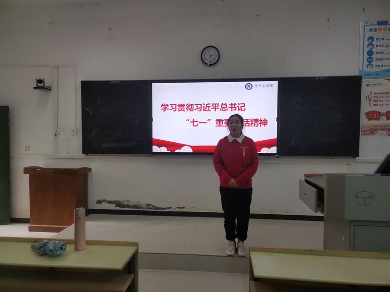 第一场宣讲由青年宣讲团成员胡友为大家解读习近平总书记“七一”重要讲话精神。通过她的宣讲,我们了解到“七一”重要讲话精神的主要内容及重要意义,梳理了中国共产党百年奋斗的主题、光辉历程和伟大成就、伟大建党精神的丰富内涵,系统解读了“四个伟大成就”“五个庄严宣告”以及在新征程上不断领会把握以史为鉴、开创未来的“九个必须”根本要求等。