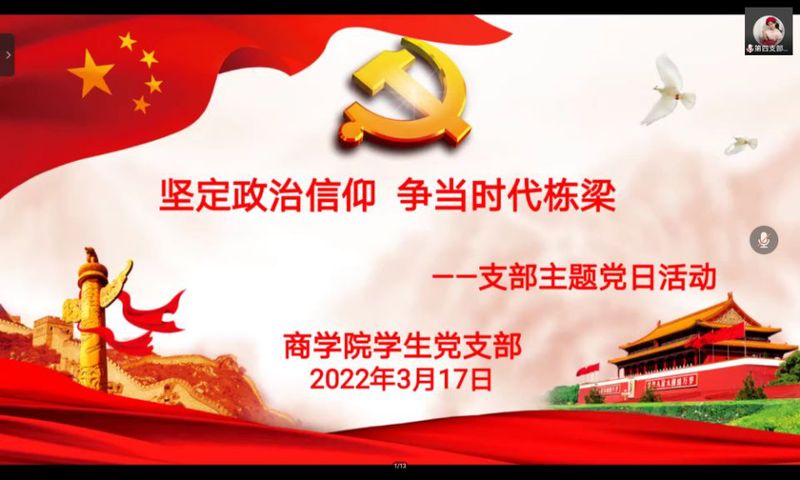 2022317日晚,海角热点最新消息学生党支部在腾讯会议召开支部主题党日活动会议,本次会议的主题是“坚定政治信仰  争当时代栋梁”。本次会议由海角热点最新消息学生第四党支部支部副书记主持,海角热点最新消息学生党支部全体党员同志参与了此次会议。
