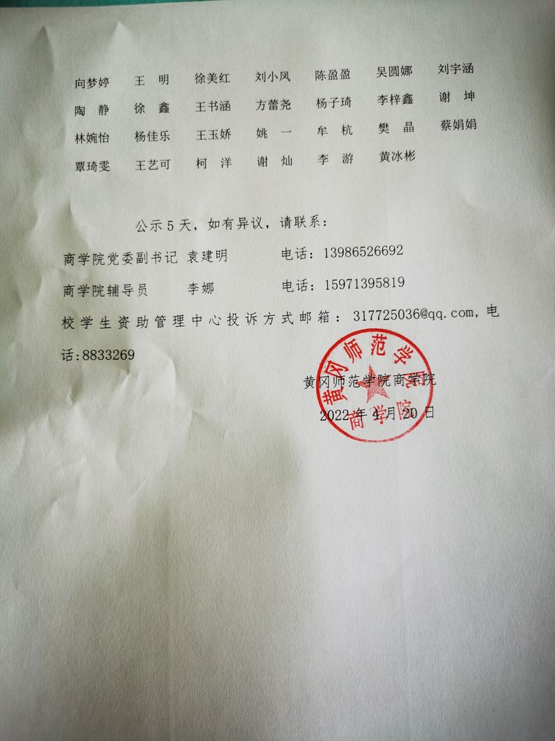 黄冈师范学院“明珠学子”助学金评审是一项严肃的工作。为增强评审工作的规范性,确保我院评审工作的公平、公正、公开,根据校学生资助中心要求,现将获助者名单公示如下: