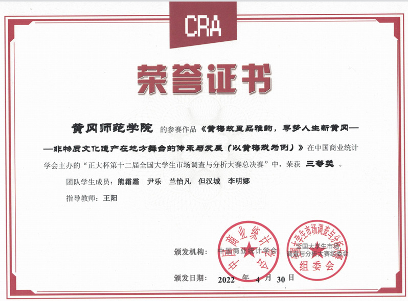 黄冈师范学院第十二届全国大学生市场调查与分析大赛获奖名单