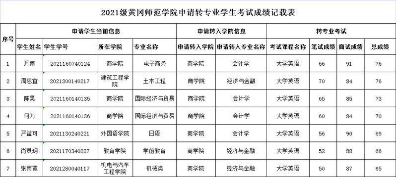 2022年黄冈师范学院申请转入海角热点最新消息学生成绩公示