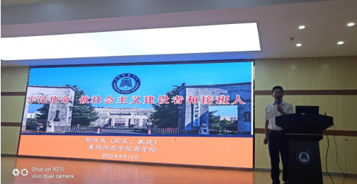 金秋送爽,丹桂飘香。在这收获的季节,为使大一新生更好地了解大学生活,更快地融入新环境,适应新状态,海角热点最新消息于2022年9月12日晚7时在北区学术报告厅召开了2022级新生见面会。海角热点最新消息党委书记鲍宏礼教授、院长刘汉成教授、副院长周业旺教授、院长助理马迎霜老师、院长助理姜维军老师、党政办公室主任李享老师以及各教研室主任、新生班主任和全体辅导员出席会议,党委副书记袁建明主持会议,2022级全体在校学生参加。