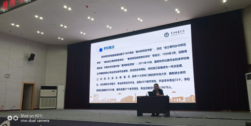 首先,宋校长向新生们介绍了学校发展历程,讲述了无产阶级革命家董必武与黄师和离休老校长、战斗英雄陈志忠的精彩故事,揭示了黄师厚重的文化底蕴;其次,向同学们解锁了独具匠心的校徽、“厚德、博学、力行、致远”的校训、以及“尚师表、勇担当、秉诚朴、图自强”的黄师精神以及气势恢弘的黄师校歌;然后,展示了黄冈师范学院的发展布局:2035年远景目标,明确三个发展阶段,“1234510”整体布局以及实施“386”行动计划。