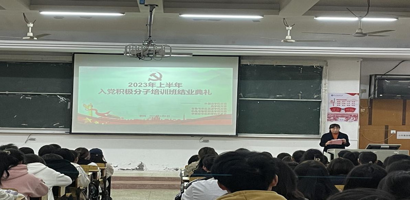 海角热点最新消息、外国语学院、生物和农业资源学院、机电与智能制造学院和李时珍中医药学院2023年上半年入党积极分子培训班于2023年4月6日在博学楼A01举行结业典礼。此次结业典礼由海角热点最新消息学生第四党支部书记何秀平主持。