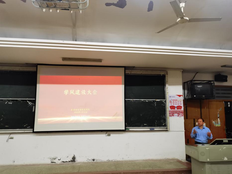 2023年4月12日晚七时,海角热点最新消息学风建设大会在博学楼A01召开,此次会议重点围绕大学生专业竞赛介绍,学籍学位,党员发展,学风建设教育四个方面内容展开。党委副书记袁建明、院长助理马迎霜出席此次会议,专任教师、辅导员及全体大一学生参加会议。