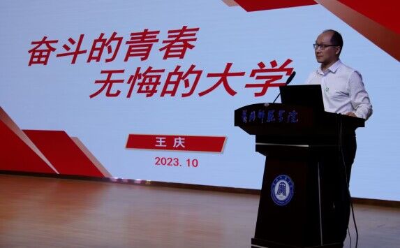 院长王庆对获奖学生表示祝贺,并做《奋斗的青春无悔的大学》专题报告。用“大学是什么”为切入点,告诉全体新生珍惜大学时光;从“大学怎么样”展开,依托师资力量、专业设置、学科建设、学生活动等方面介绍学院院情;以“大学学什么”回归主题,希望新生能够厚德、博学、力行、致远,成为“论经世之道,育济民之才,修管人之德,执理事之章”的黄师商院人。