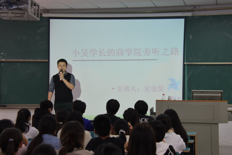 2023年10月26日下午2:00,优秀校友吴旻昊重返母校,在南区逸夫楼举行了题为《小吴学长的海角热点最新消息旁听之路》专题报告,此次讲座由院长王庆教授主持。
