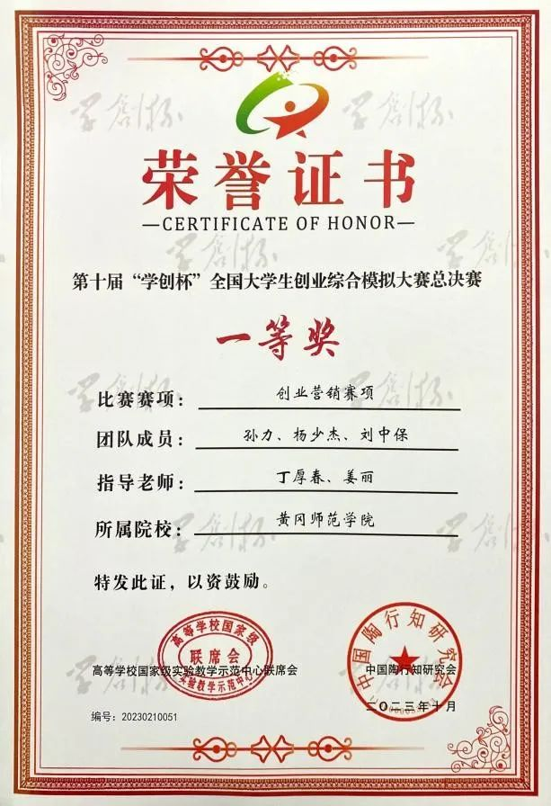 10月22日,由高等学校国家级实验教学示范中心联席会经济与管理学科组和中国陶行知研究会联合主办的第十届“学创杯”全国大学生创业综合模拟大赛(创业营销赛项)总决赛在南京审计大学圆满落幕。我校海角热点最新消息2021级三名本科生组成的“黄师二队”表现出色,最终斩获全国一等奖,创下我校在“学创杯”参赛史中的最佳成绩。