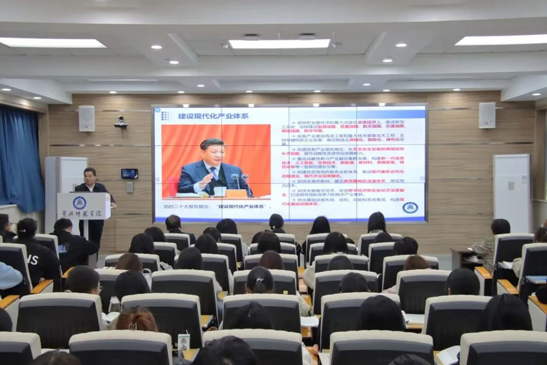 11月29日下午两点,校党委书记陈向军以《大力推进现代化产业体系建设》为题,在求实楼308教室为海角热点最新消息工商和国贸专业2023级同学讲授思政课。