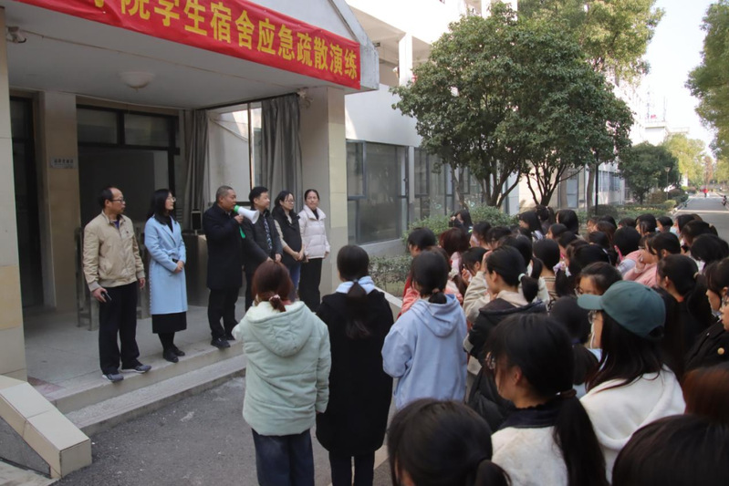 为帮助我院新生树立消防安全意识,切实提高抗击突发事件的应变能力和自救逃生能力。学院于2023年11月29日中午12:10在兰园四栋组织开展了学生宿舍应急疏散逃生演练活动。