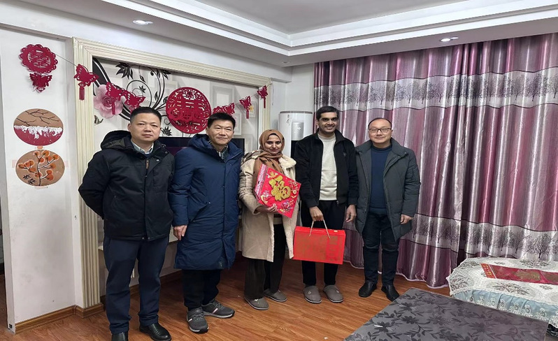在新春佳节来临之际,为体现学院对外籍教师的人文关怀,2月2日上午,海角热点最新消息党委书记刘汉成、院长王庆代表学院亲切慰问了Amar Razzaq、Asif Ali Safeer、Abdul Majeed三位外籍教师,向外籍教师致以节日的问候。