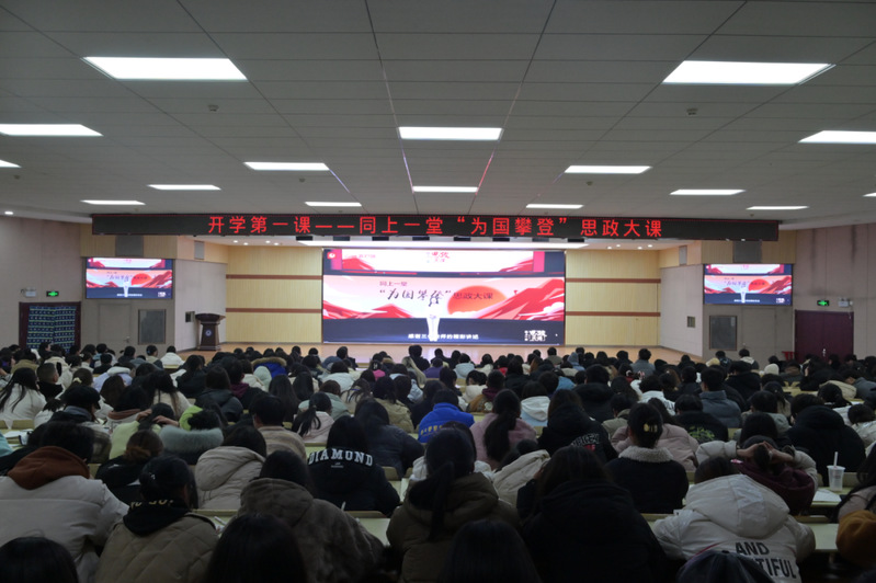 为进一步加强新时代大学生的理想信念教育,坚定中国特色社会主义的远大理想。新学期开学第一天,按照学工部、校团委统一部署,我院在2月26日(周一)晚8:00,组织20名学生在主会场北区二楼报告厅聆听了“为国攀登”思政课,团委学生会部分干部在兰园四栋109会议室集体线下观看并讨论,其他同学线上观看。各学院党委副书记、全体辅导员在主会场观看。