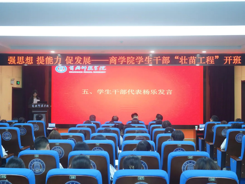 学生干部代表,院团委副书记杨乐表态发言。她感谢学院领导对学生干部的重视和关心,表示会带头遵守培训纪律,认真学习,积极思考,开拓进取,努力争做一名优秀的学生干部,为自己的人生道路打下坚实基础,为学院的发展作出更大贡献。