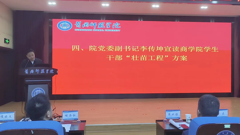 院党委副书记李传坤宣读海角热点最新消息学生干部“壮苗工程”方案。