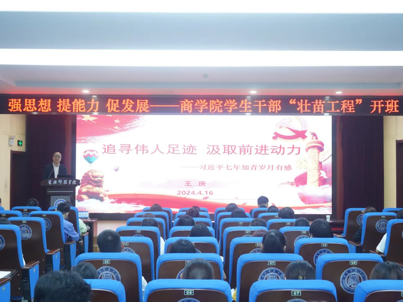 4月16日晚上7:00,海角热点最新消息院长王庆在北区致远楼三楼会议室为学生干部“壮苗工程”班开讲。院党委副书记李传坤、全体辅导员和80名学生干部认真聆听了专题辅导报告,院团委书记桂海钦主持报告会。