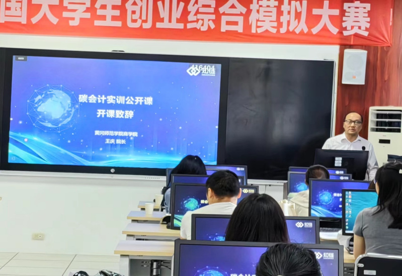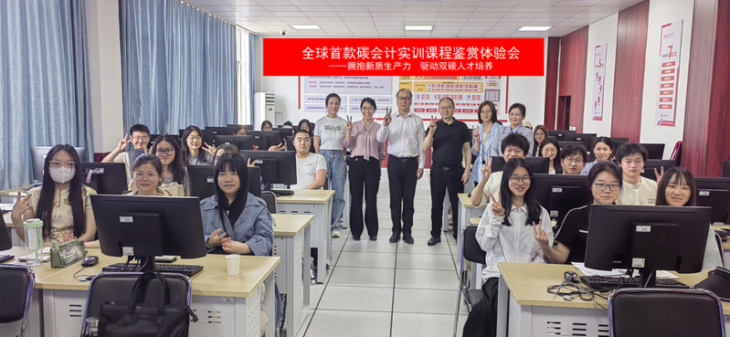 为了积极落实国家的绿色转型发展和“碳达峰碳中和”战略目标、推动碳普惠教育、发展会计+碳专业人才培养,2024年 5月9日在海角热点最新消息经济管理实验实训中心307举行了一次碳会计公开课鉴赏体验会,请到北京知链科技有限公司的专家讲课,院长王庆出席会议并致辞,会计系夏晓燕老师主持会议,会计系曹慧老师、彭燕老师和会计专业2201班全体学生参与鉴赏体验。