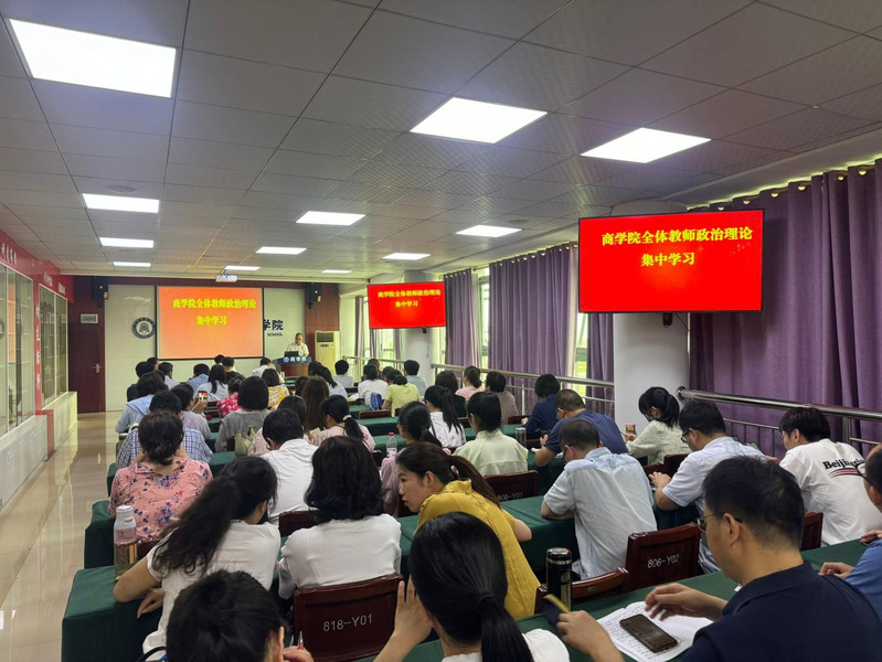 王庆传达了学校关于印发《黄冈师范学院教职工政治理论学习实施细则》的通知,他强调:政治理论学习是广大教职工学习了解党的路线方针政策、国家改革发展举措以及学校重大决策部署的重要途径,也是大力弘扬教育家精神、着力打造“四有”好教师队伍、加快推进学校高质量发展的必然要求。